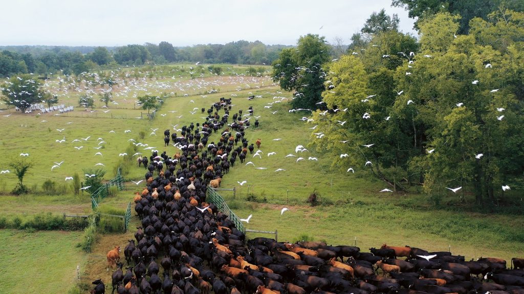 Learning from his own observations and Allan Savory’s teaching on holistic management, Will mimics nature by bunching and herding his cattle. (Credit: © White Oak Pastures)